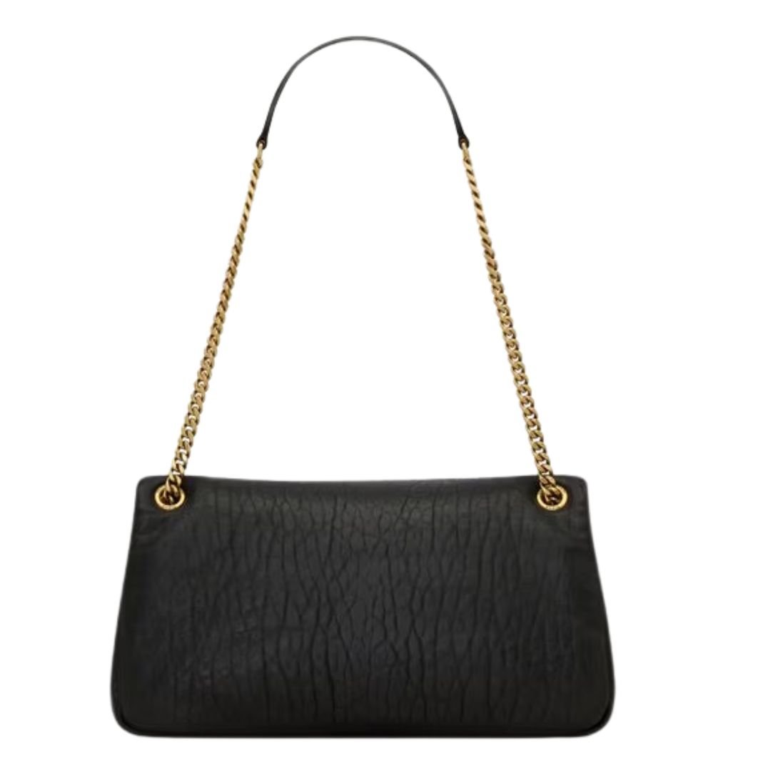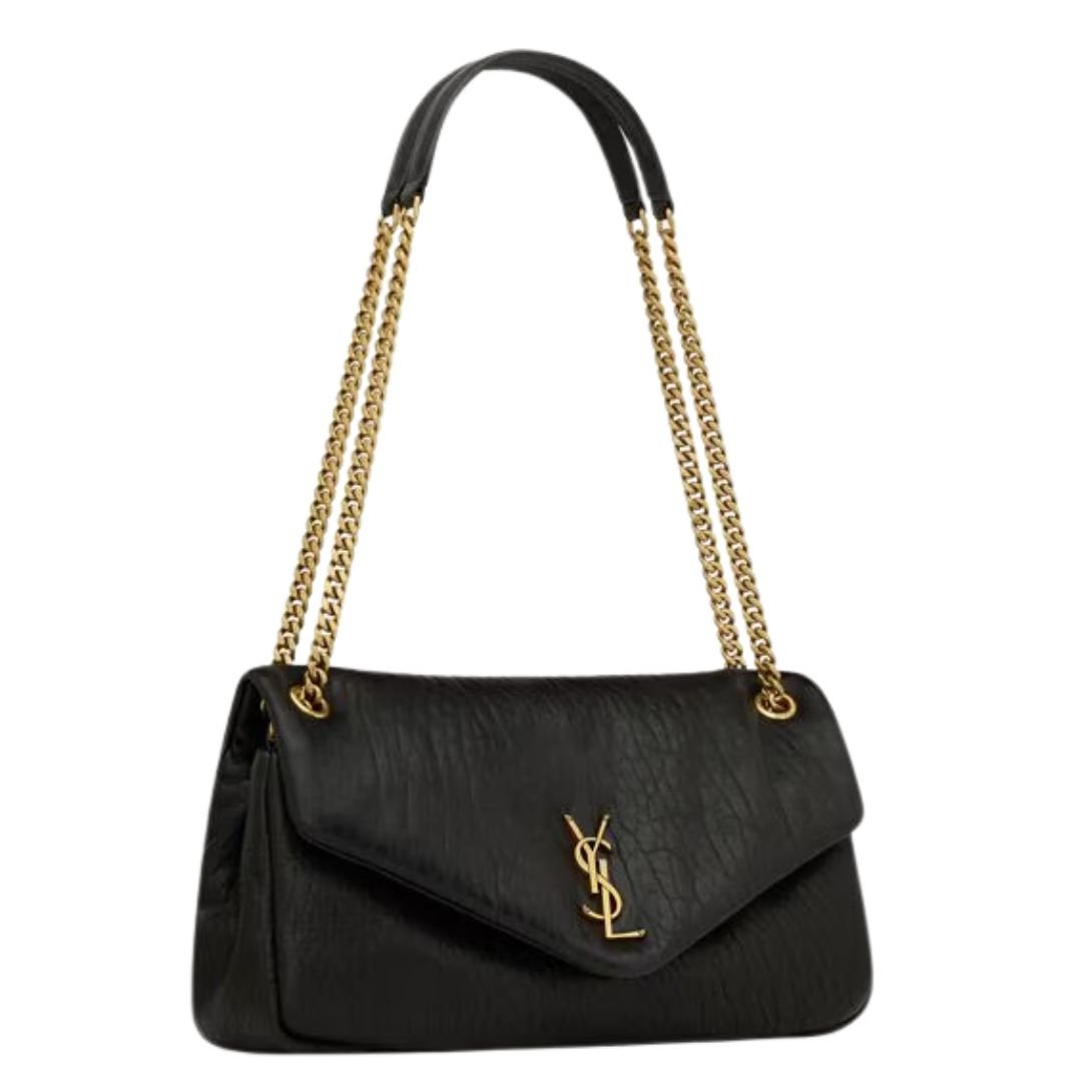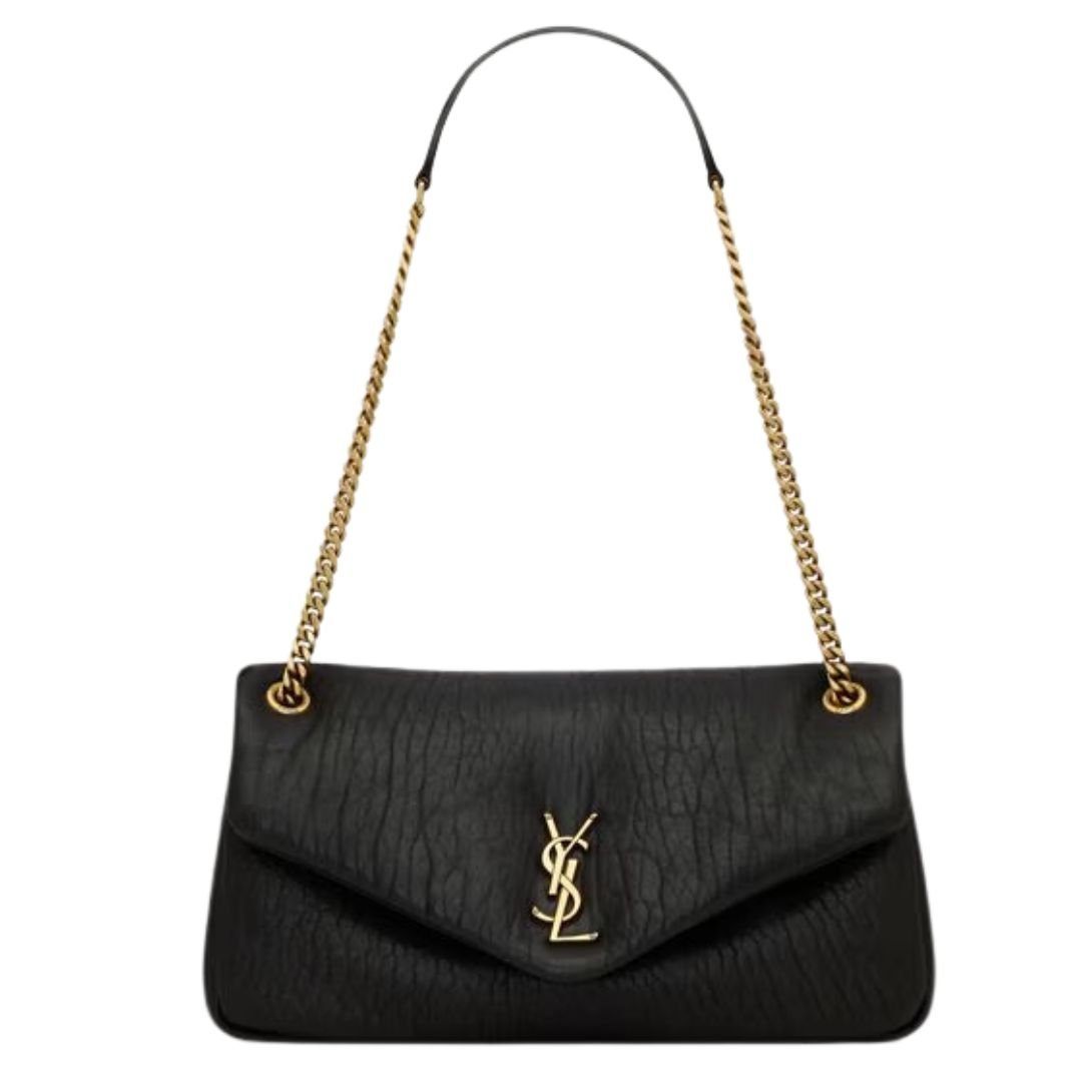 This medium version of SAINT LAURENT’s signature envelope bag is crafted from finely grained leather with a puffy, pillowed effect, offering a stylish, soft texture. It is equipped with a sliding curb-chain strap for versatility, allowing it to be worn comfortably on the shoulder.