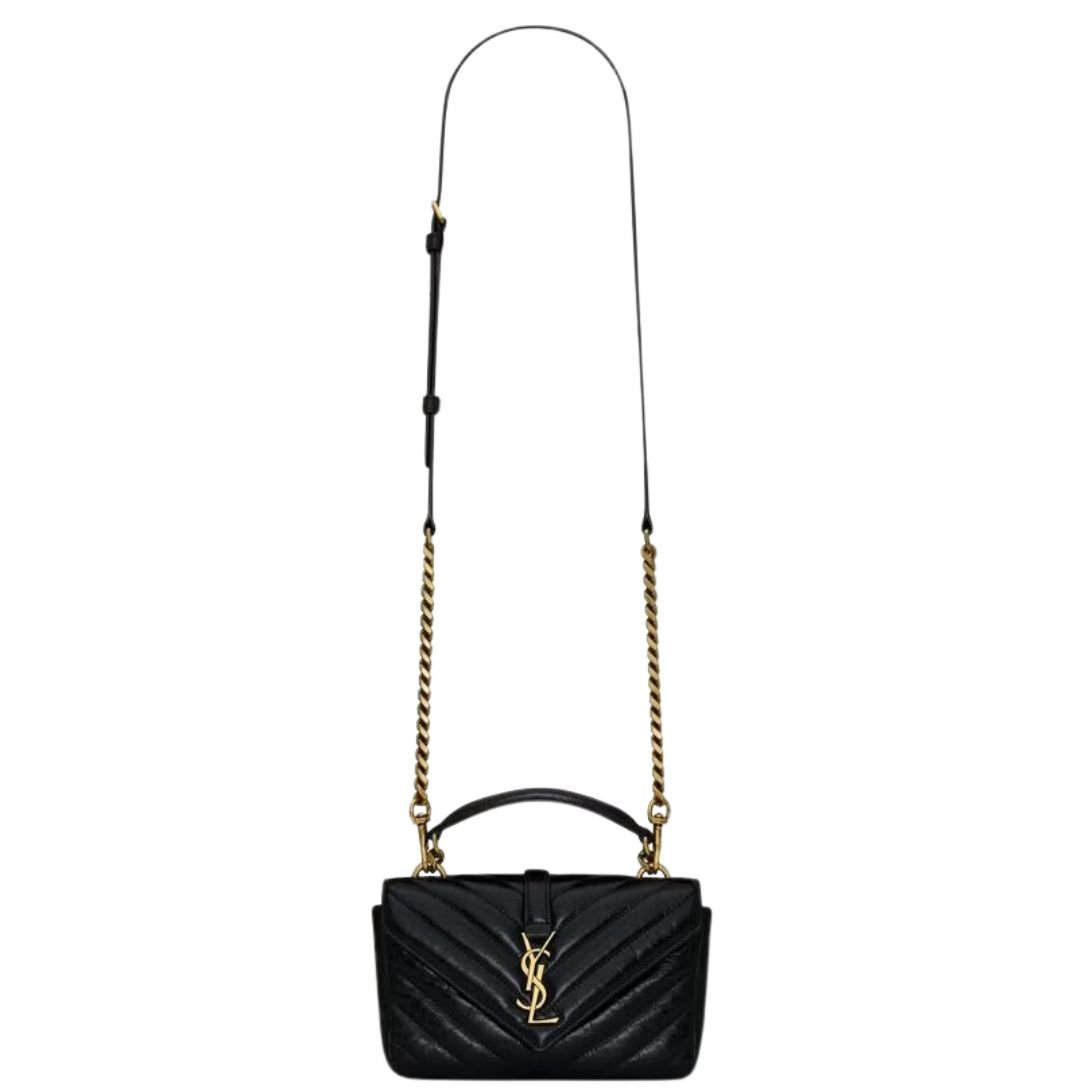 SAINT LAURENT COLLEGE MINI CHAIN BAG IN SHINY CRACKLED LEATHER