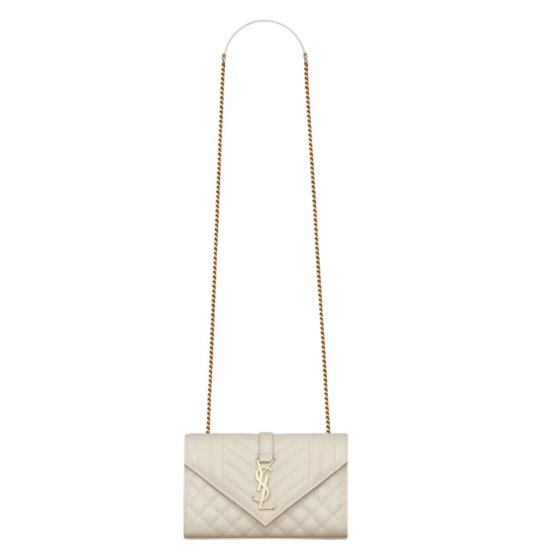 SAINT LAURENT ENVELOPE SMALL IN QUILTED GRAIN DE POUDRE EMBOSSED LEATHER