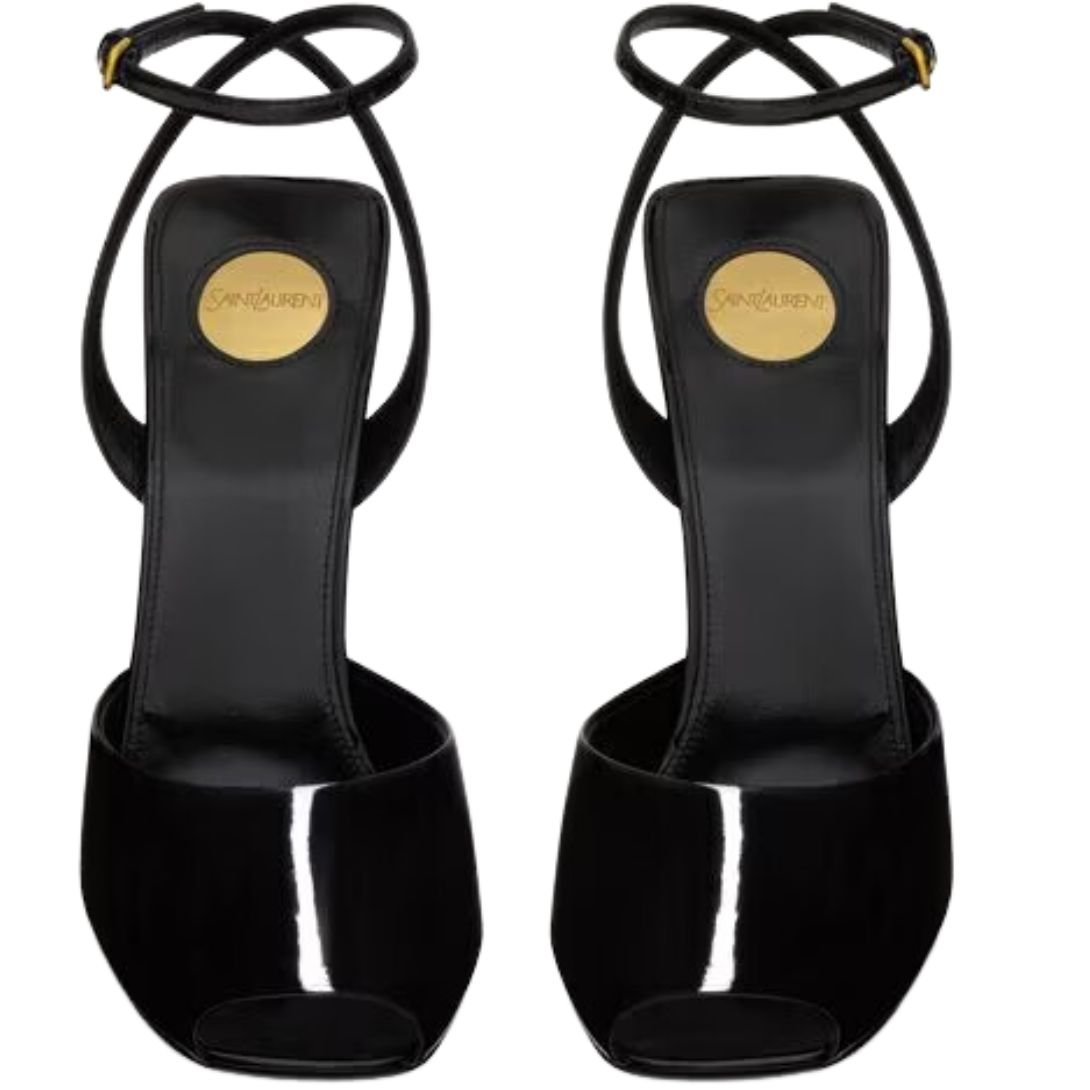 SAINT LAURENT LA SCANDALE SANDALS IN PATENT LEATHER