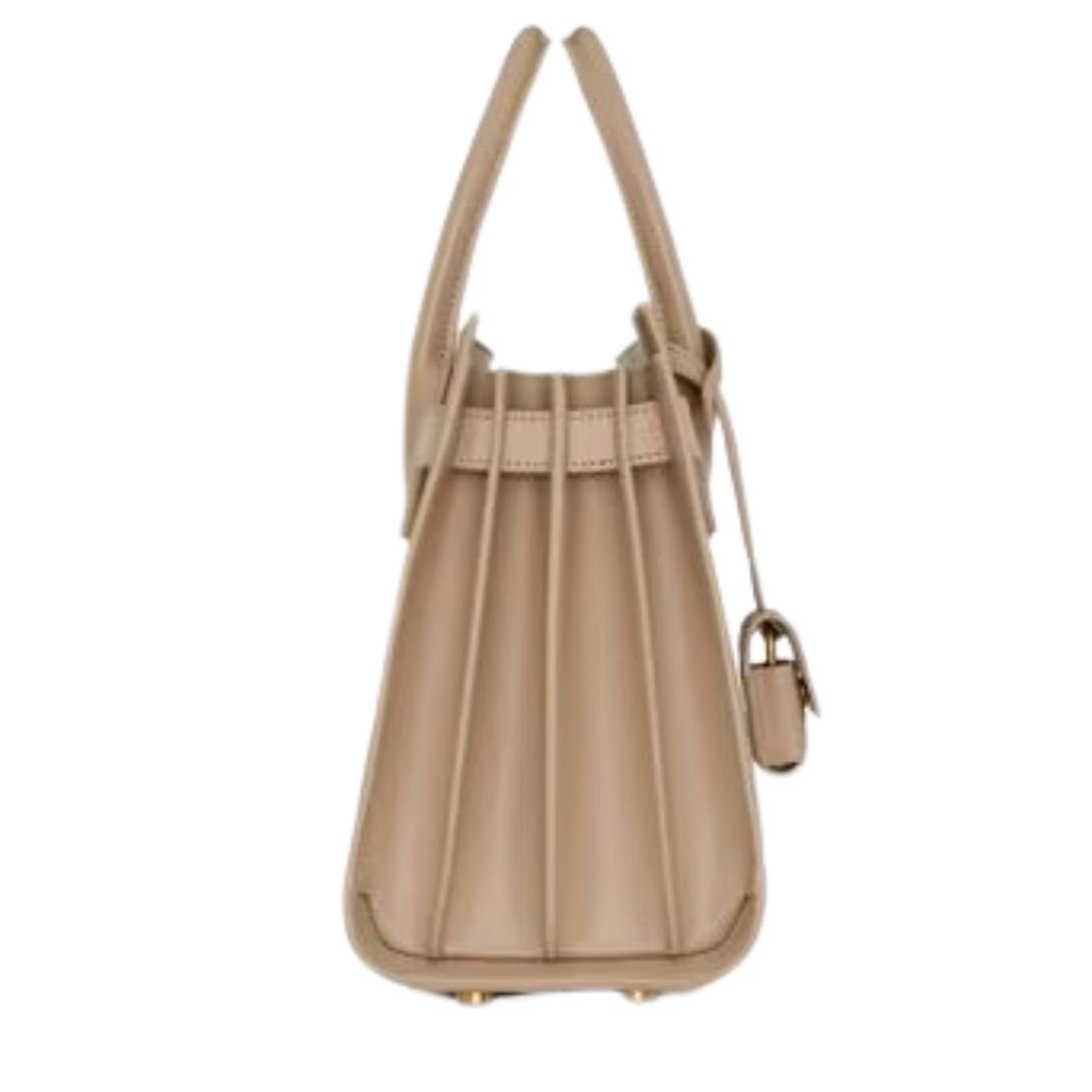 The Nano Sac de Jour Bag is a compact yet luxurious piece that combines elegance with functionality. Crafted from calfskin leather and lined in leather, this bag is designed for those who appreciate both style and practicality. It is easily recognizable by its accordion sides, snap tabs, and signature brass padlock.