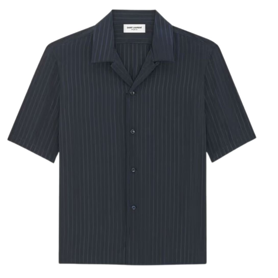 SAINT LAURENT SHIRT IN MATTE AND SHINY CASSANDRE STRIPED SILK