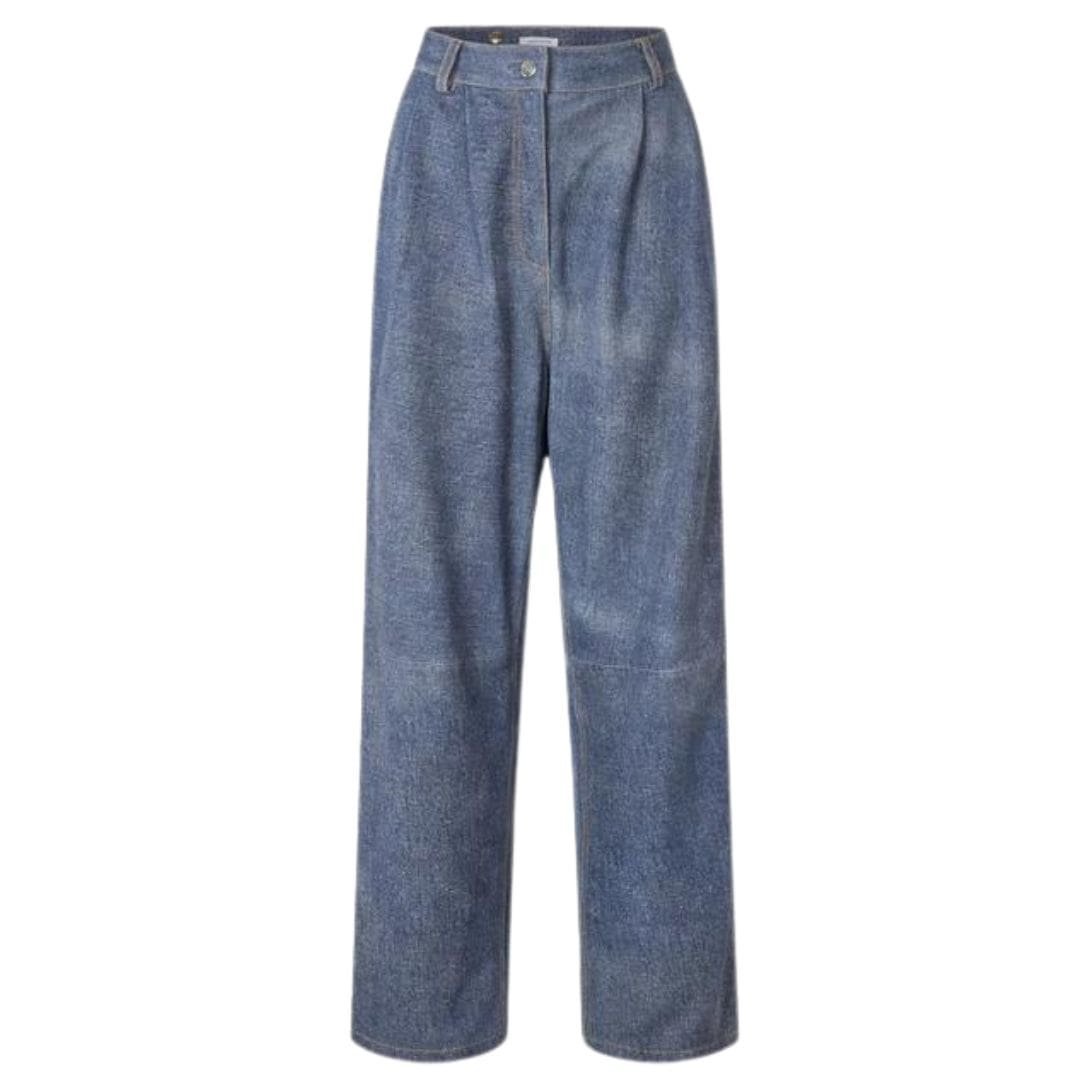 The Saks Potts Bruno Pants in Blue epitomize contemporary elegance with a distinct edge. Crafted from a luxurious blend of materials, these pants seamlessly merge comfort with high-fashion flair. The striking blue hue commands attention, offering a vibrant yet sophisticated alternative to traditional neutrals. This bold color is both versatile and eye-catching, making the pants a standout piece in any wardrobe. SAKS POTTS BRUNO PANTS BLUE