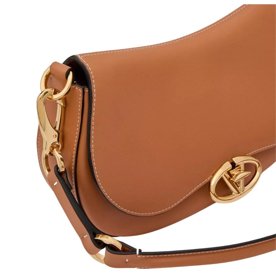 Introducing the small Valentino Garavani Ohval shoulder bag in nappa calfskin, crafted from luxurious nappa leather and featuring a VLogo Signature twist-lock closure. This chic bag offers versatile carrying options – it can be carried over the shoulder/crossbody, thanks to its handle and adjustable leather shoulder strap.