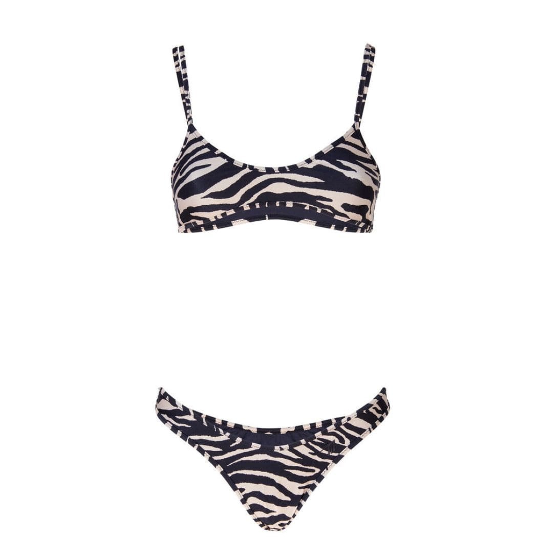 The Attico Black and Cappuccino BikinIÂ Zebra Printed Lycra with Printed Logo – Made in Italy