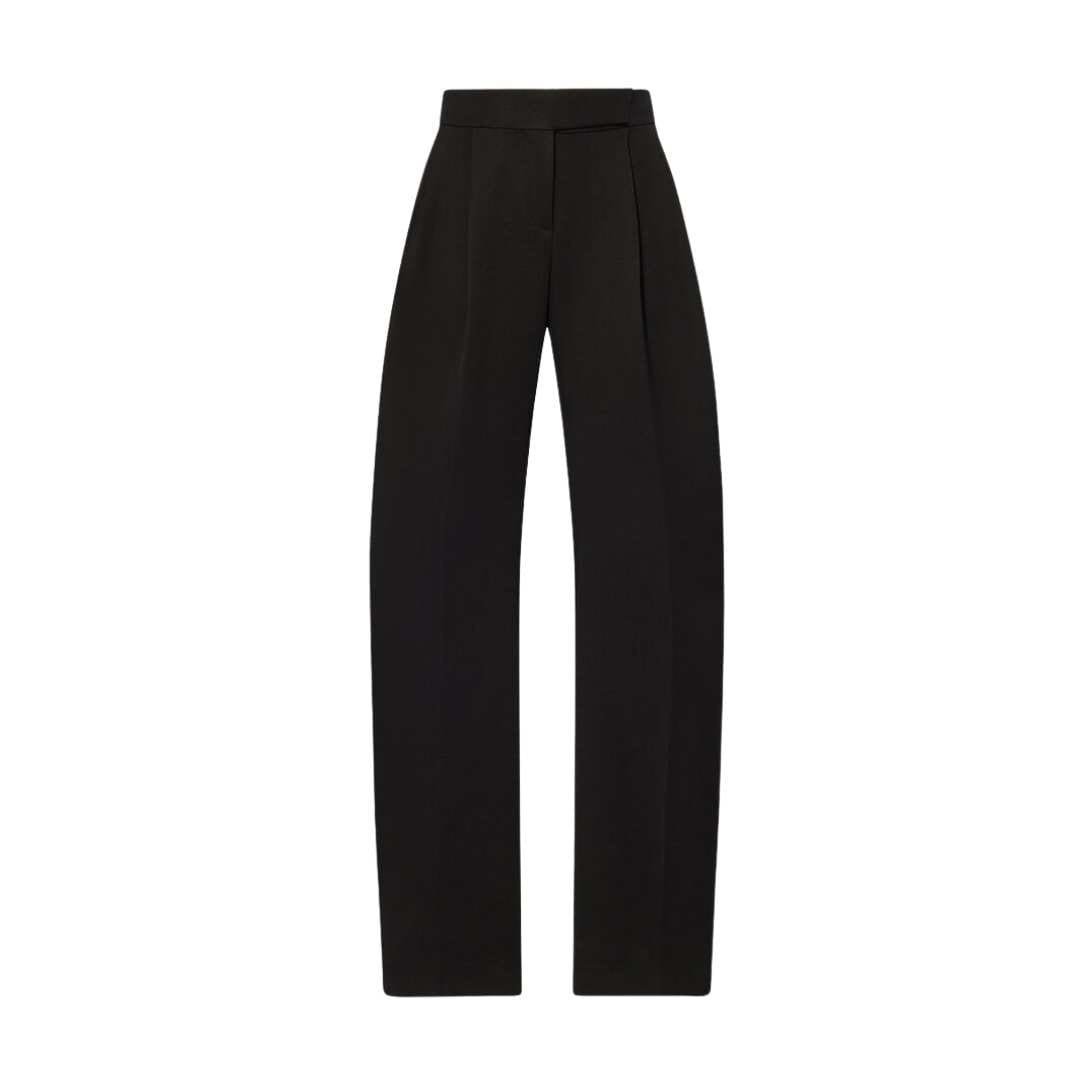 The attico black long pants in pale pink tailoring stretch feature a low rise, wide leg, and logo embroidery. Made in Italy.