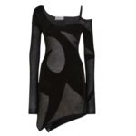This sleeveless the attico black Mini dress, expertly crafted in Italy, features black chiffon viscose adorned with a striking macro tribal tattoo design.