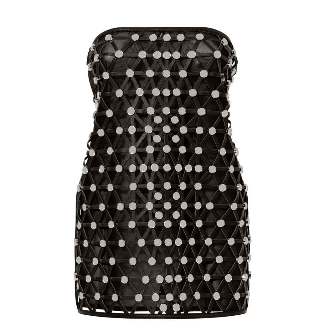 The Attico Black Mini Dressin black leather adorned with inlaid studs. Crafted in Italy.