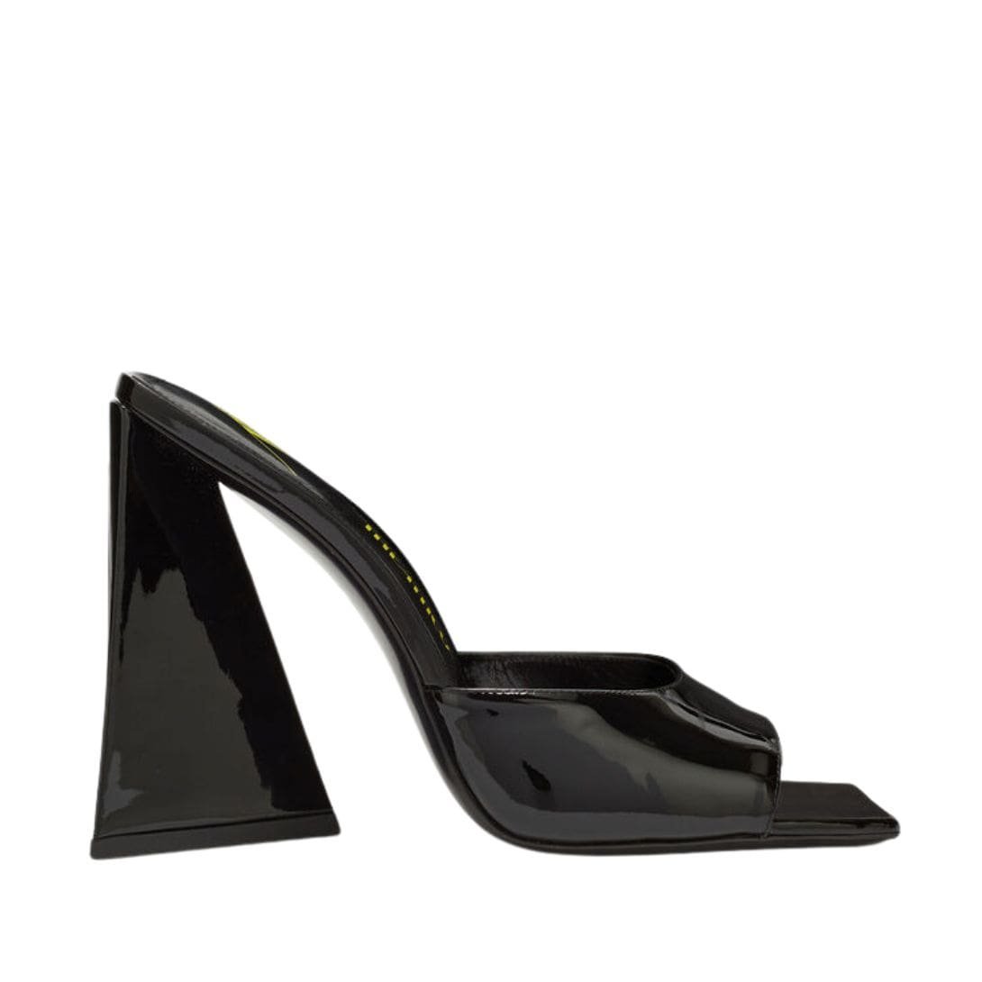 The Attico ”Devon” Black Mule in black patent nappa leather, pyramid heel, height 115mm. Made in Italy.