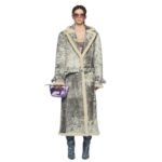 Embrace elegance with this the attico milk and dark grey long coat in dark grey and milk mutton leather, featuring a stylish belt at the waist and sleeves, logo metal buckles, and a logo metal button. Made in Italy, this coat combines luxury and functionality.
