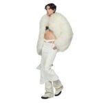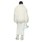 The attico white short coat in white Mongolian fur features wide lapels, a padded black jacquard logo lining, and logo metal hooks. Made in Italy.