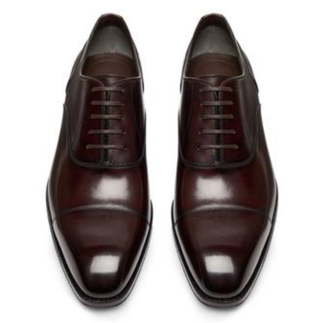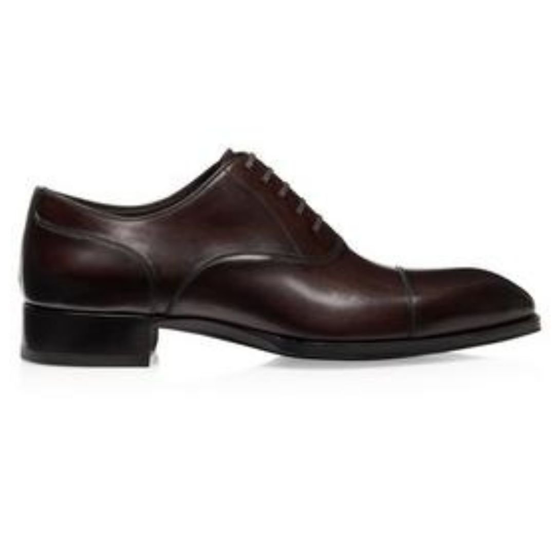 TOM FORD BURNISHED LEATHER ELKAN LACE UP DARK CIGAR