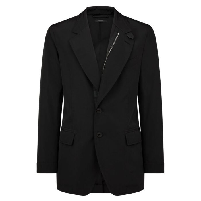 This fully lined tailored jacket is a testament to sophisticated craftsmanship and modern luxury, offering a sleek silhouette and impeccable structure.
