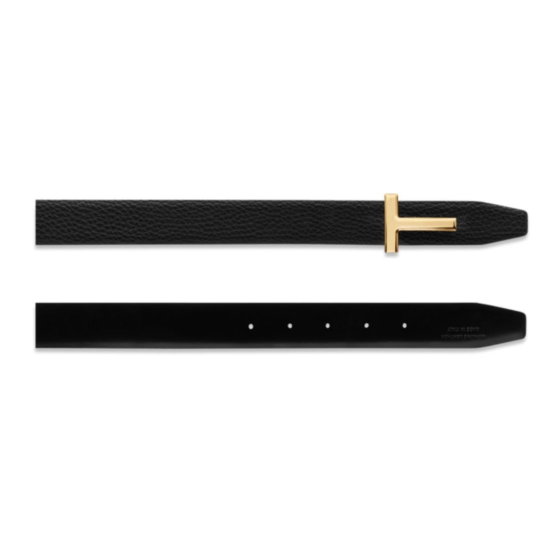 TOM FORD GRAIN LEATHER AND SMOOTH LEATHER REVERSIBLE T BELT 30 MM BLACK