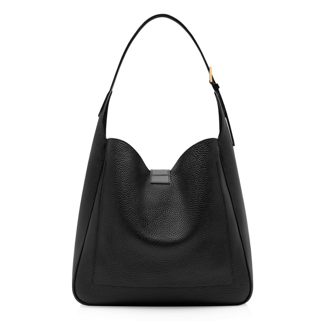 TOM FORD LEATHER MONARCH LARGE HOBO BLACK