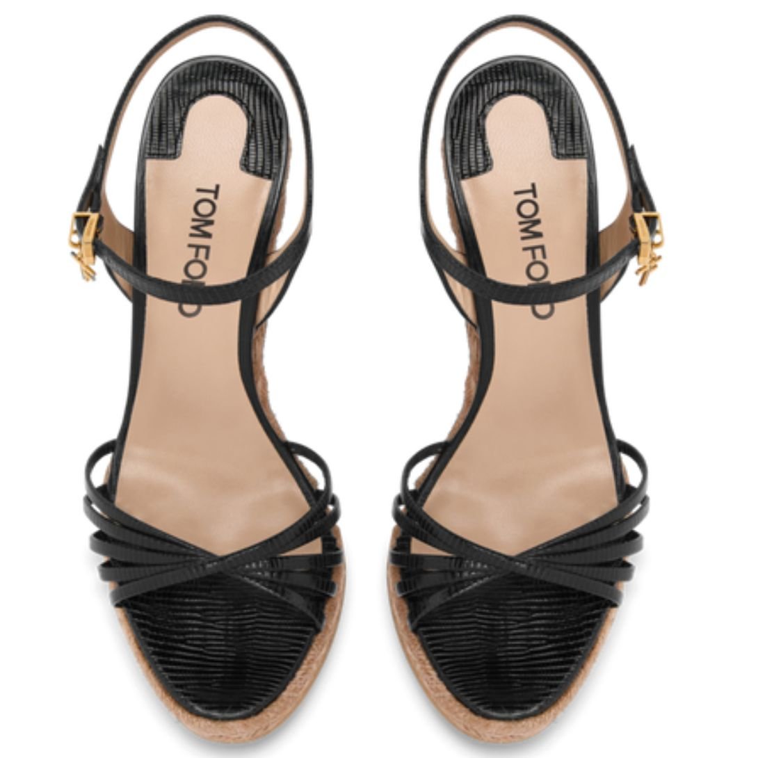 TOM FORD PRINTED LIZARD LEATHER CABANA WEDGE ESPADRILLE BLACK