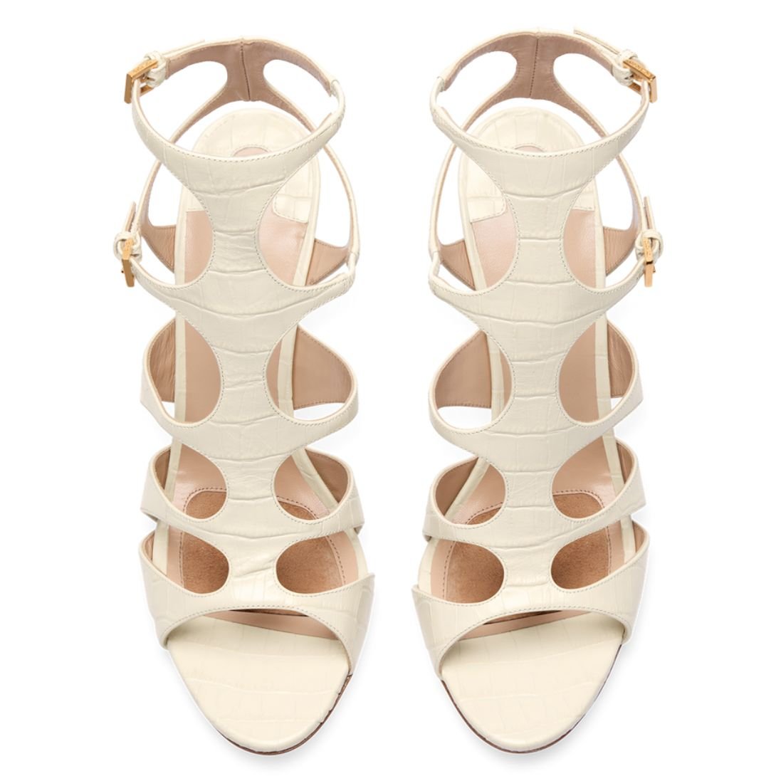 TOM FORD SHINY STAMPED CROCODILE LEATHER PARADIS CAGE SANDAL IVORY