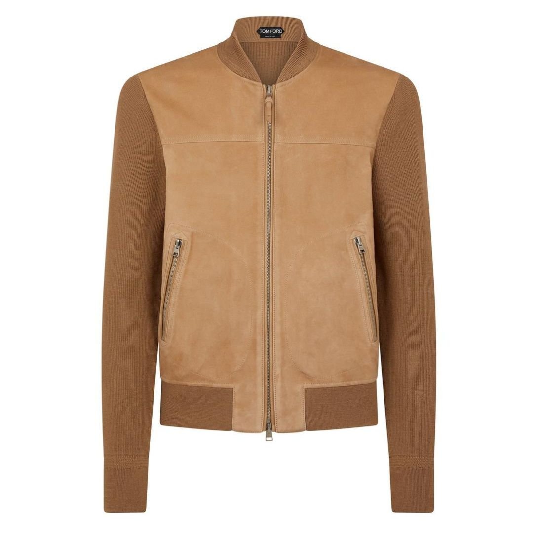 TOM FORD SUEDE FRONT MERINO ZIP THROUGH