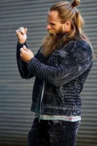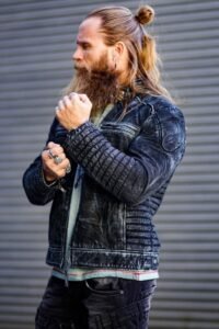 USA Leather Jacket Embossed America’s Highway The Mother Road D-12 1962 is made from the finest quality Kangaroo Leather and treated with oil waxed to give it a vintage look. The jacket is black, and the vintage effect gives it a white shade. The graphic on the back side of the jacket is embossed. The jacket has two YKK zippered pockets on the front chest along with two open pockets and inside it has two pockets including a secure zippered pocket. On the waist, the jacket has waist adjustment snap buttons.