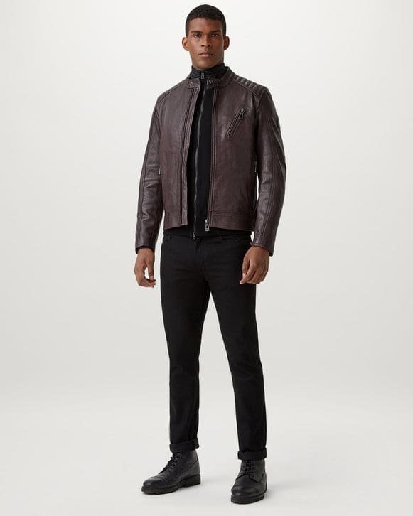 Minimalist café-racer jacket.