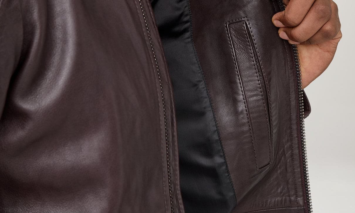 Outer: 100% Goat Leather. Lining: 100% Cotton. Sleeve Lining: 100% Polyester