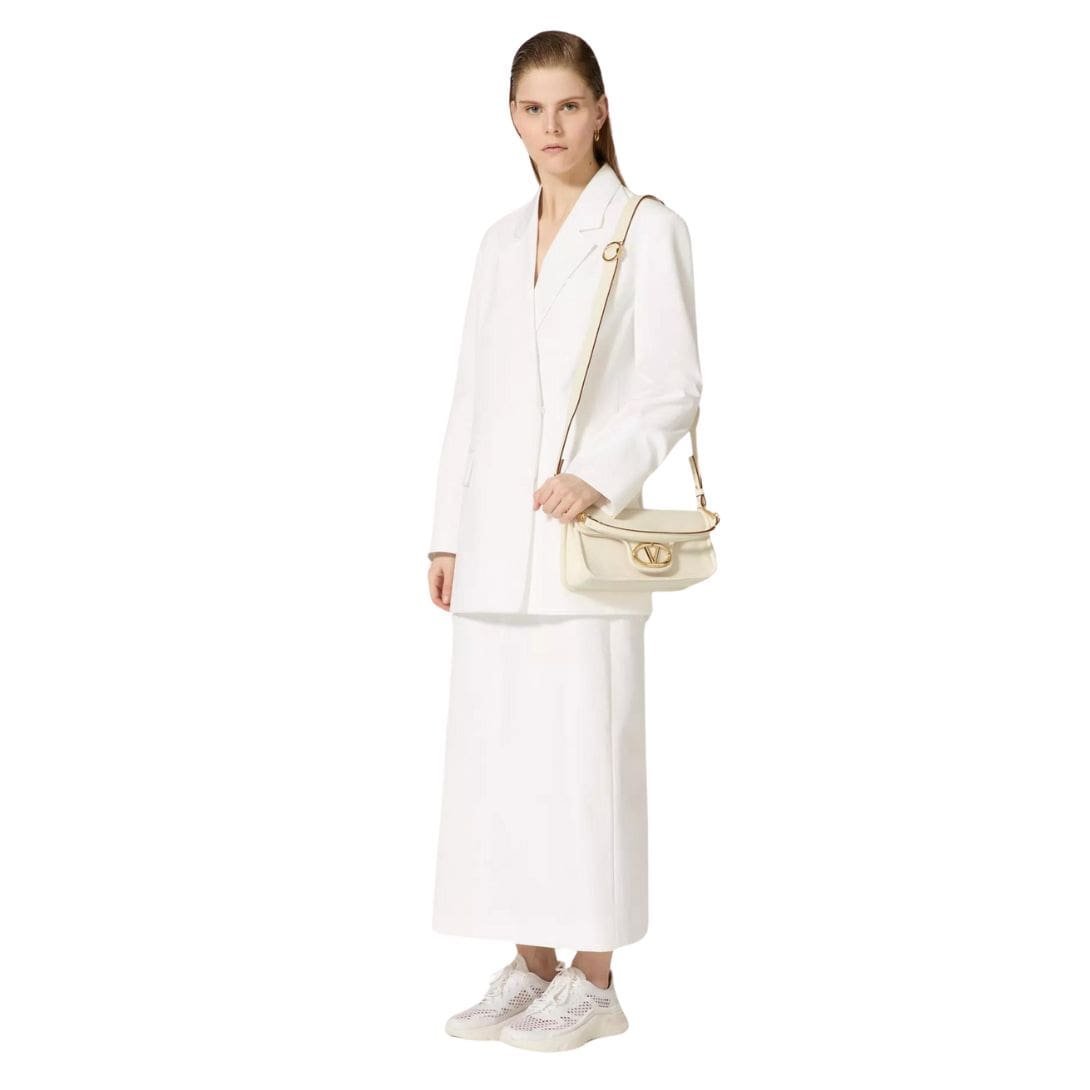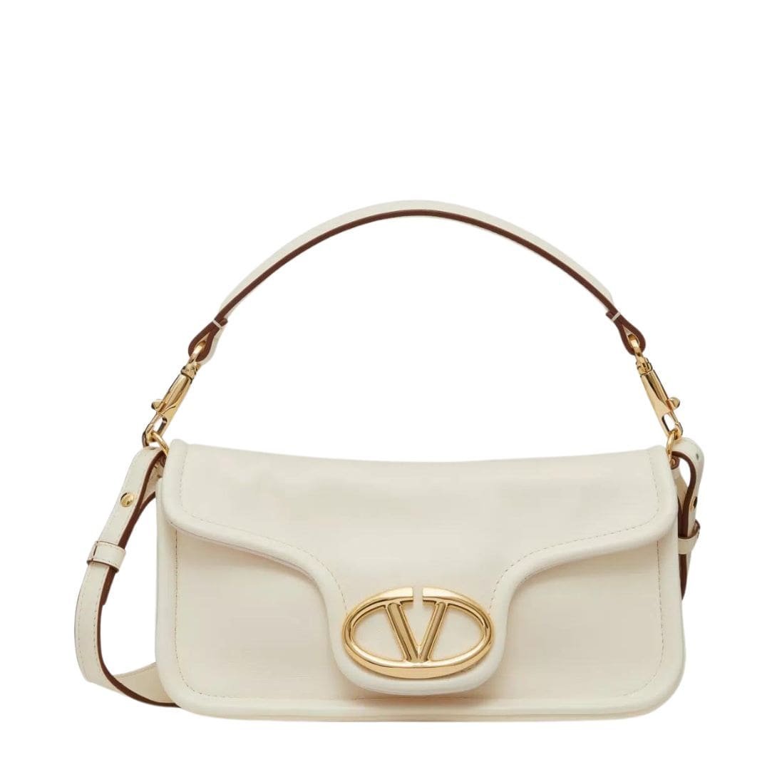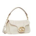 Introducing the Valentino Garavani VLogo 1960 nappa leather medium shoulder bag featuring a metallic VLogo Signature element. This versatile bag offers multiple carrying options – it can be worn on the shoulder/crossbody or carried by hand, thanks to its removable handle and detachable leather shoulder strap.