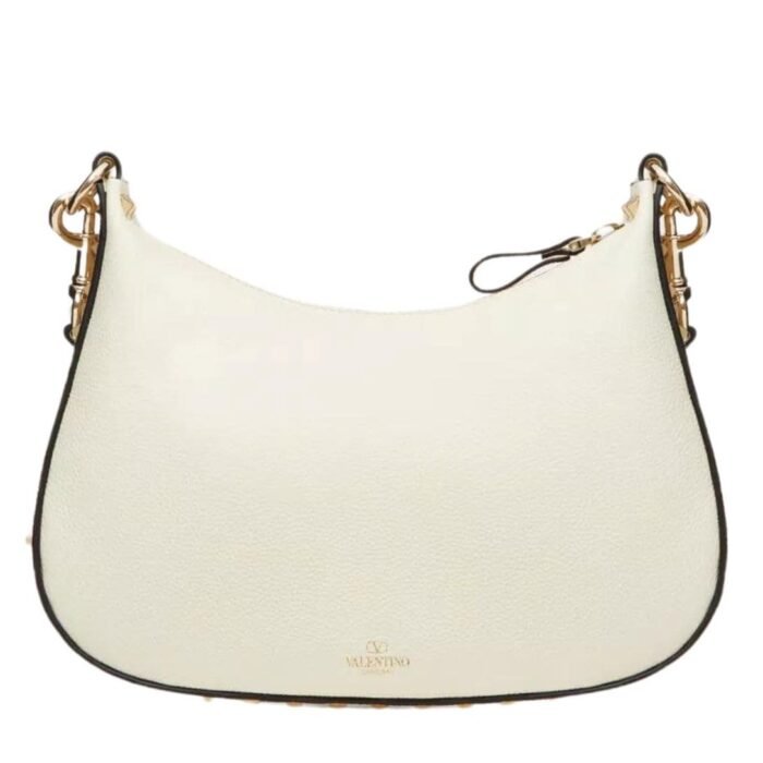 Introducing the Valentino Garavani Rockstud small hobo bag, meticulously crafted from grainy calfskin. Versatile in its design, it offers multiple carrying options: shoulder, crossbody, or handbag, thanks to its removable handle and shoulder strap. Adorned with platinum-finish studs and hardware, this bag exudes a sophisticated allure. The zipper closure ensures security, while the adjustable and removable studded leather shoulder strap adds a touch of edgy elegance. Inside, discover the luxurious leather lining and one slip pocket for convenient organization. With a shoulder strap drop length of 57 cm, this bag offers comfort and style. Dimensions: W25xH20xD4 cm. Made with precision in Italy.