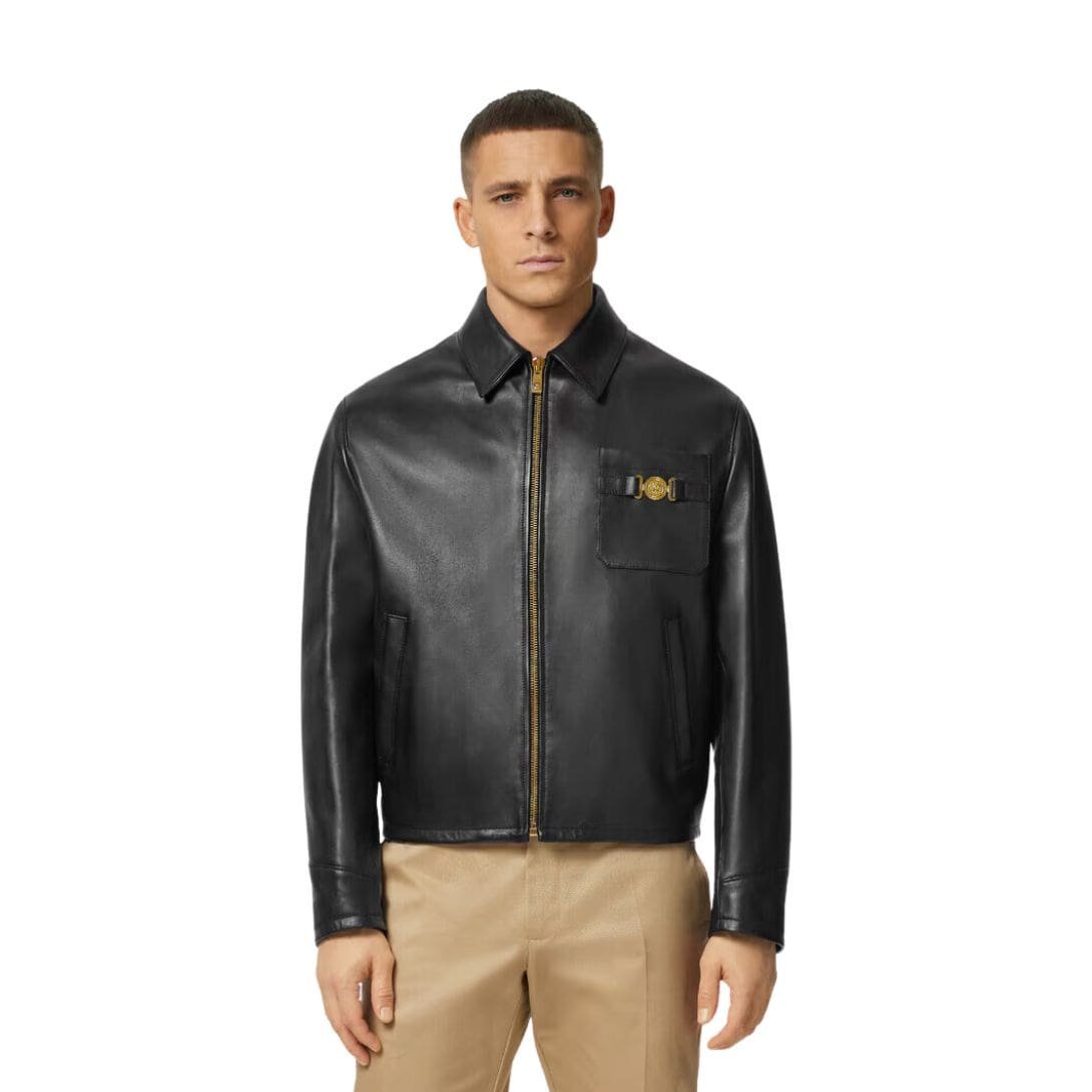 Versatility is key with this piece, as it effortlessly transitions from day to night, complementing both casual and formal ensembles. Pair it with jeans and sneakers for a laid-back yet polished look, or layer it over a tailored shirt and trousers for a more refined aesthetic. Whether worn with denim or draped over a cocktail dress, the Versace Blouson Leather Jacket makes a bold statement while exuding effortless sophistication.