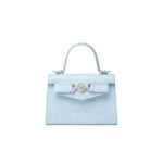 At first glance, the bag captivates with its lustrous crocodile-effect leather exterior, meticulously embossed to mimic the texture and allure of genuine crocodile skin. The rich, tactile surface adds depth and dimension, creating a striking visual impression that demands attention.