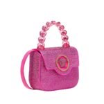 The bag’s design centers around the legendary Versace emblem, the Medusa head, which is embellished with dazzling crystals that catch and reflect light, creating a mesmerizing sparkle. This iconic emblem serves as the focal point of the bag, radiating power, allure, and timeless allure.