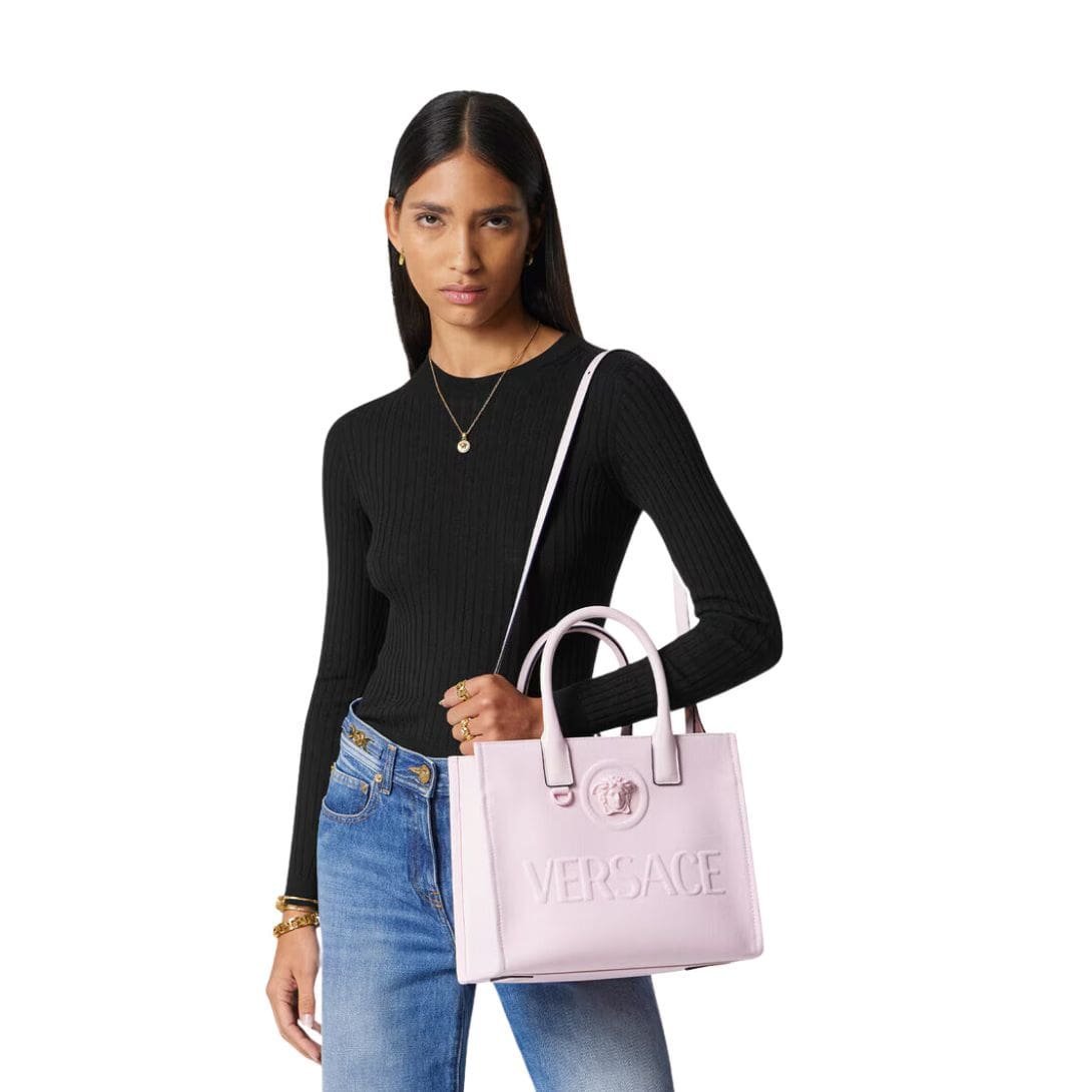Practical yet undeniably luxurious, the Versace La Medusa Canvas Small Tote Bag seamlessly transitions from day to night, complementing any ensemble with its timeless elegance. Whether you’re running errands, attending a business meeting, or enjoying a night out on the town, this versatile accessory is sure to elevate your style quotient.
