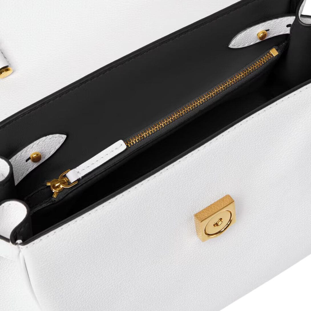 Upon closer inspection, the attention to detail becomes even more apparent. The meticulous stitching, precise hardware, and impeccable finishing reflect Versace’s commitment to excellence and craftsmanship. Every element of the handbag is thoughtfully designed to enhance both its functionality and visual appeal, catering to the needs of the modern woman who values both style and substance.