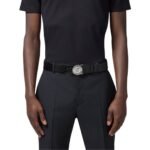 At the heart of this exquisite creation lies the iconic symbol of Versace’s legacy: the mesmerizing Medusa emblem. Adorning the belt buckle with its intricate detailing, the Medusa head serves as a powerful emblem of strength, power, and allure, echoing the brand’s rich heritage and mythical inspiration. Cast in gleaming metal, it commands attention and exudes a sense of regal elegance.