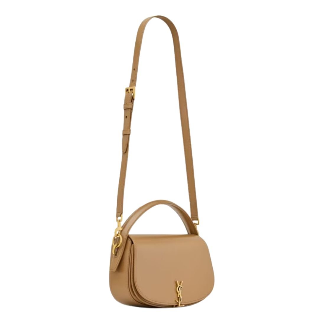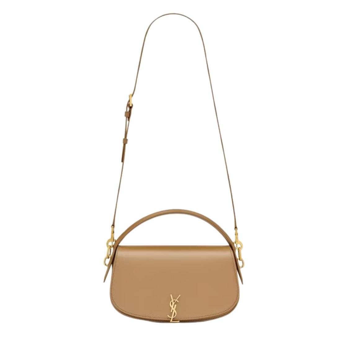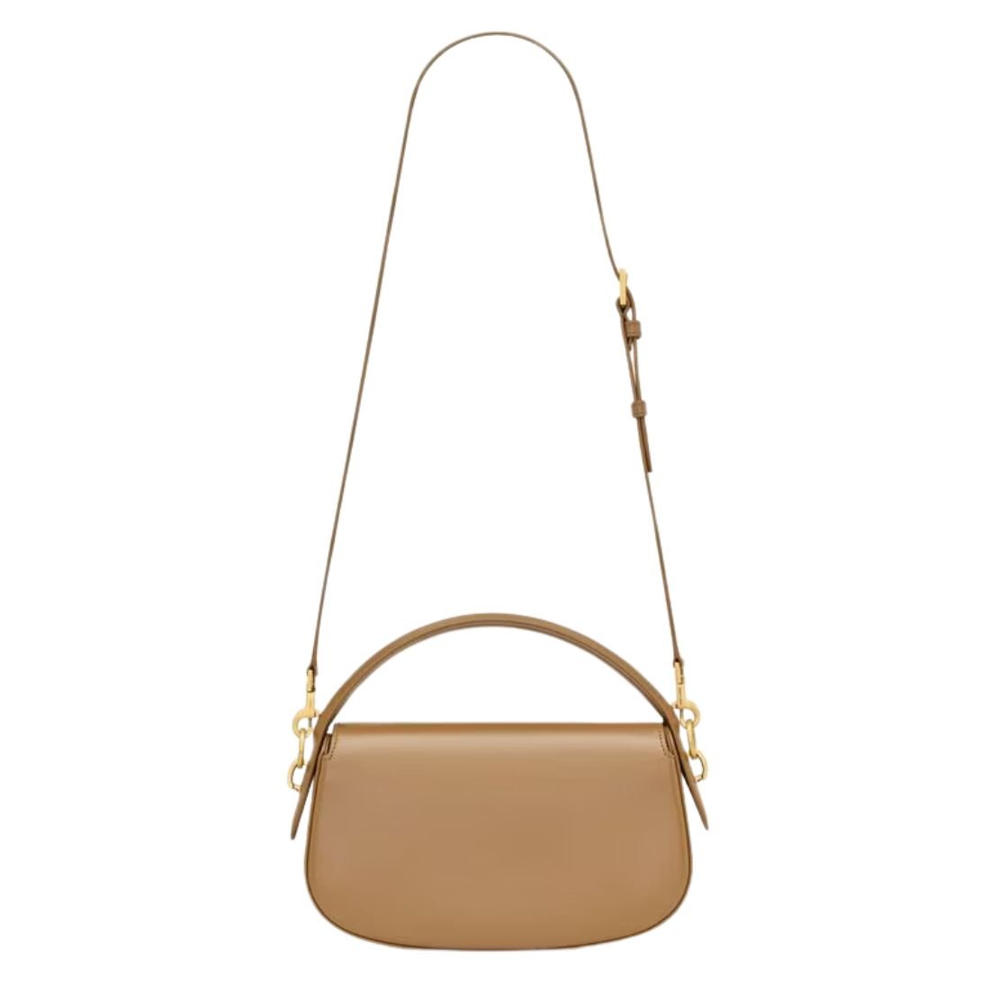 This sophisticated half-moon shoulder bag is crafted from gently polished calfskin leather. The flap is adorned with a pivoting CASSANDRE closure, adding a refined and iconic detail. The adjustable and detachable swivel-hook strap provides flexibility for a customized carry style.