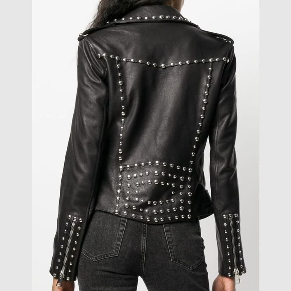 Be the first to review “Women Silver Studded Leather Jacket Spiked Silver Color Studs” Cancel reply