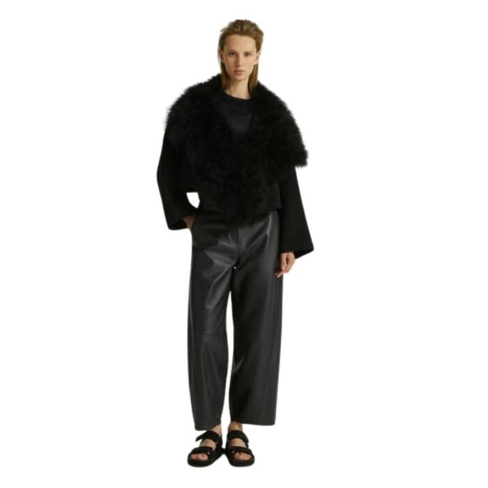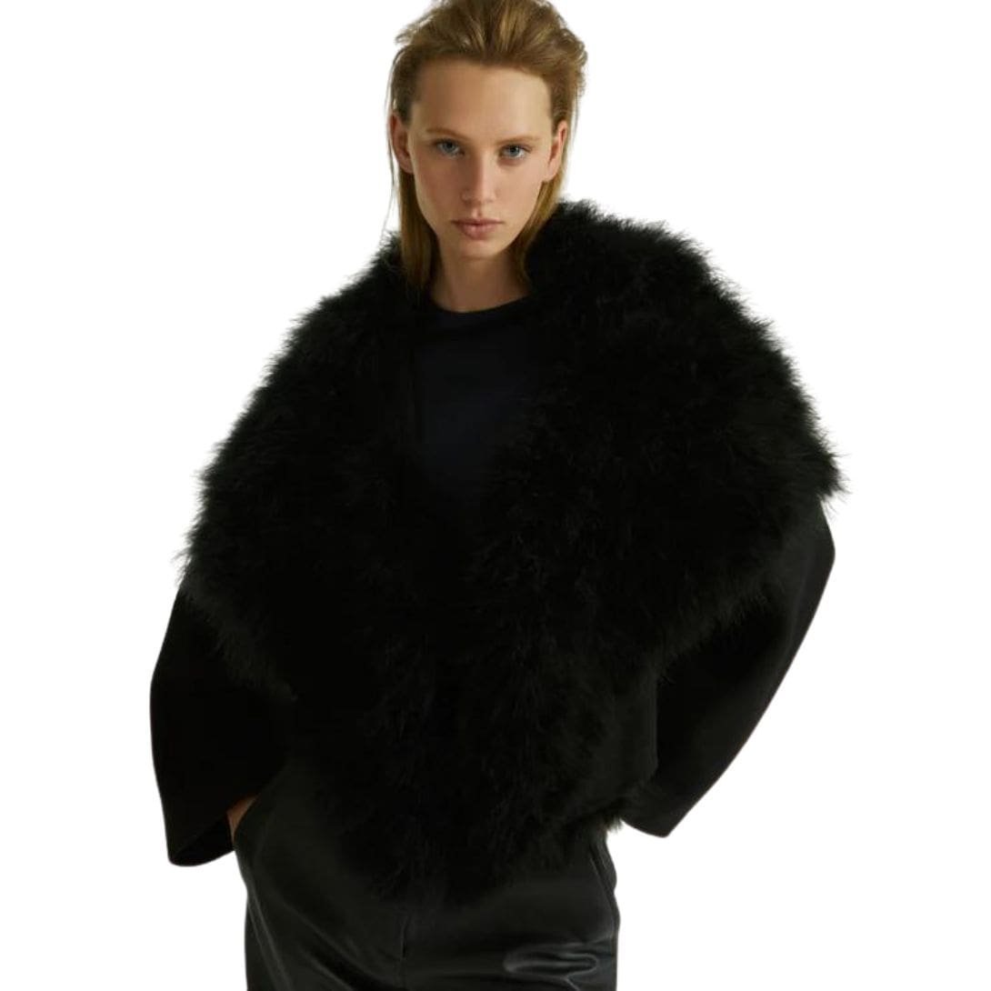 Experience Yves Salomon Short Jacket In Double-Sided Cashmere And Feathers with super soft, this oversized jacket combines a double-sided cashmere body with the fun and drama of a feathered collar. The feathers frame the face, while the kimono-style cut of the jacket brings a relaxed feel to the piece, creating a stylish sense of contrast.