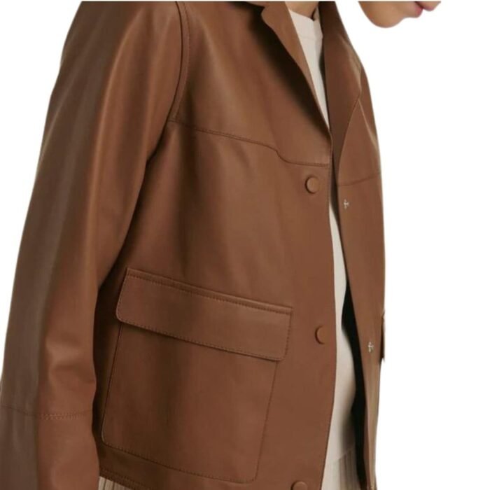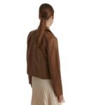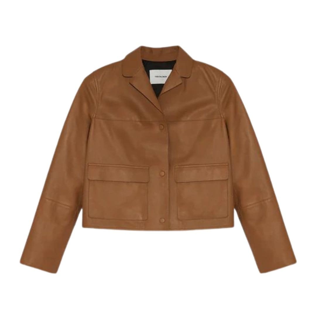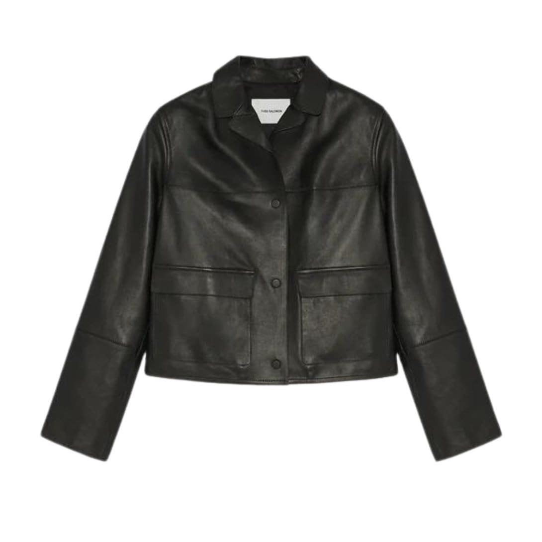 Experience Yves Salomon Short Leather Jacket with a short, light jacket with a boxy fit and simple, elegant lines. Snaps covered in matching leather close the front.